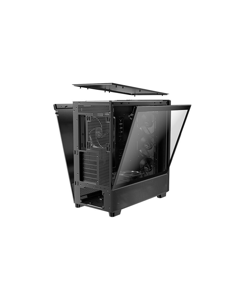 Multi-directional vent design, featuring extensive air intakes at the bottom, power supply chamber and lower sides, along with top vents and large-area mesh at the front, creating a dedicated Antec Flux airflow channel.