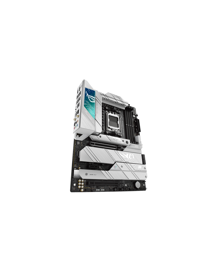 Suit up for the next gen with the stylish ROG Strix X670E-A Gaming WiFi. Its black PCB and white accents neatly contrast silver-colored heatsinks that emphasize premium power delivery for AMD Ryzen™ 7000 Series processors. Exclusive ROG overclocking utilities, full PCIe 5.0 capabilities, and DDR5 support are woven in alongside, adding uniquely tailored performance and AM5 essentials to your gaming build.